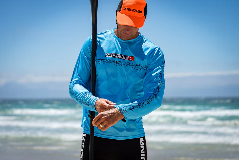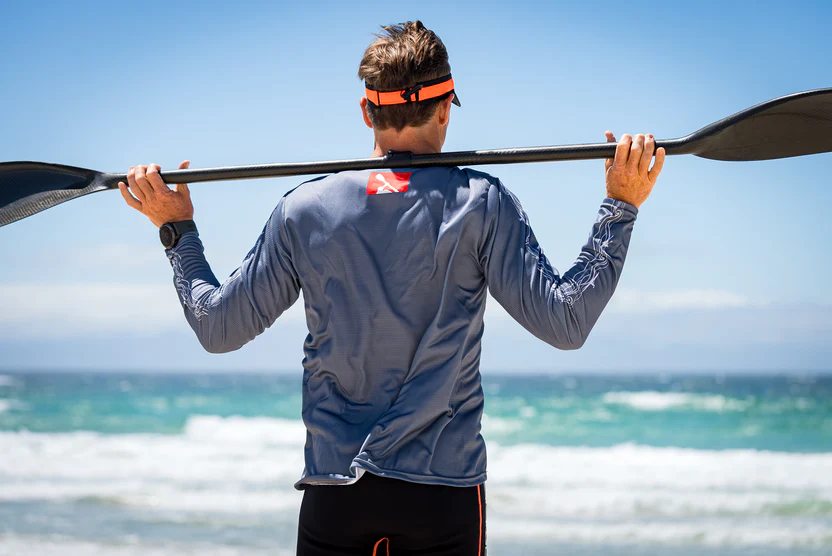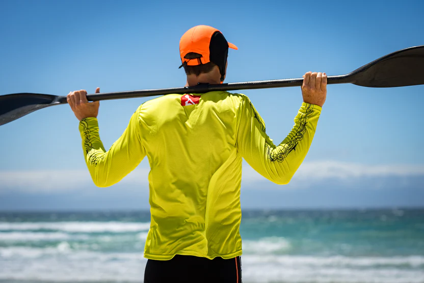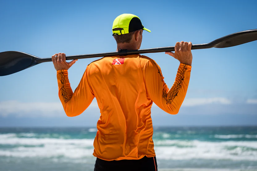 Fly Dry Men's Paddling Shirt Long Sleeve -  make sure you stay cool no matter how hot the racing or training gets. Available in Seaspray, Orange, White, Sunset Ombre, Yellowfin, Azure Reef