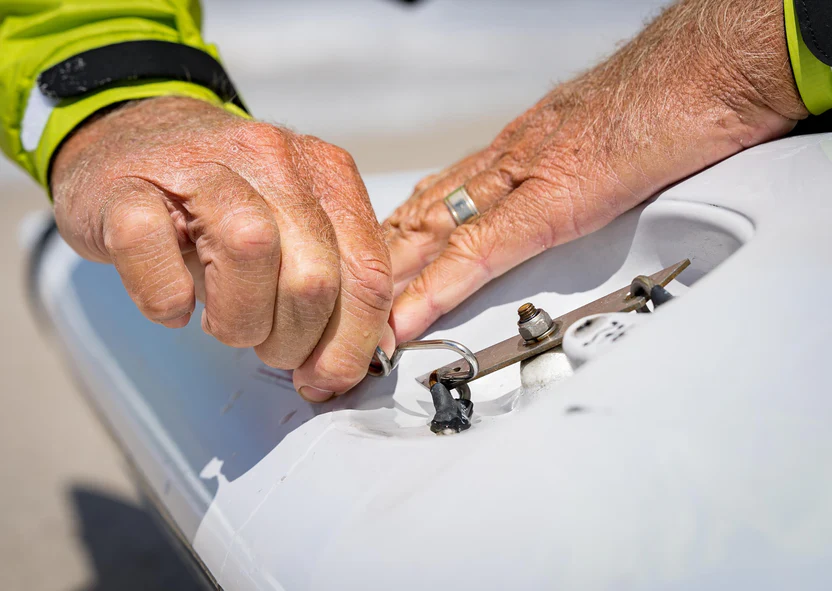- Open up access to the rudder tiller or steering mechanism at the back of your craft.