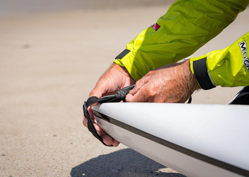 The MOCKE Emergency Steering Cord for kayaks and surf skis was designed to provide emergency directional steering if your rudder line or cable snaps. When one of your rudder lines or cables snap it is virtually impossible to steer in a straight line. Your paddling outing immediately turns into a rescue situation. With the MOCKE Emergency Steering Cord you are able to attempt a self-rescue while you wait for assistance.