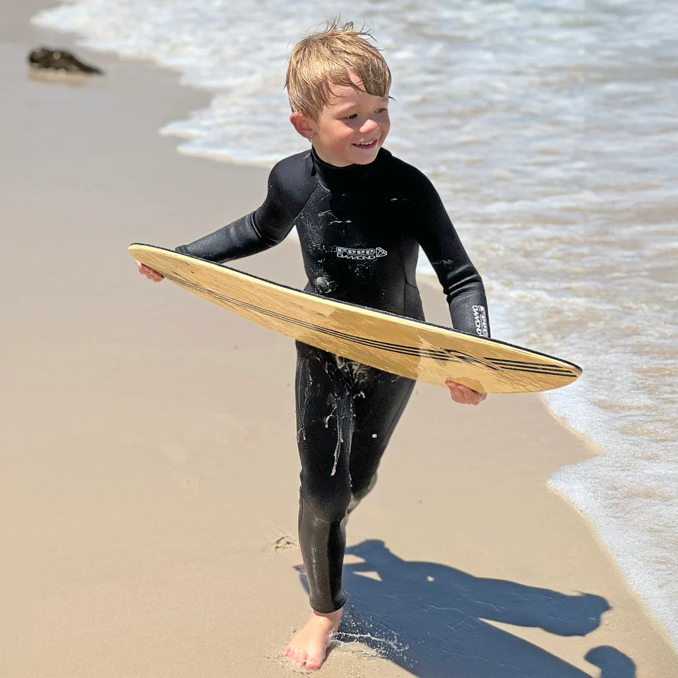The Reef Skimboard – is a top-quality skimboard, crafted from high-density plywood and equipped with a cutting-edge EVA deck for superior grip. It is ideal for all skill levels. Beginners can enjoy smooth rides over shallow water, intermediate surfers can master tricks like 360s and varials, while experts can effortlessly navigate waves and perform advanced maneuvers.